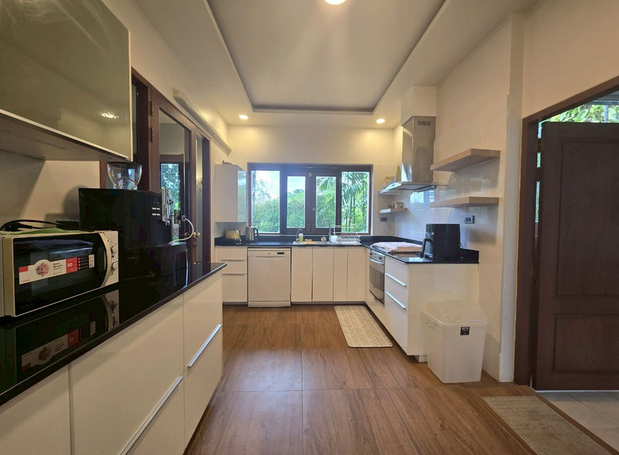 Step into tropical elegance with this stunning 3-bedroom, 4-bathroom private pool villa, where modern luxury meets peaceful greenery. Perfectly situated with direct views over a lush golf course and serene lake, this villa offers a tranquil lifestyle in an exclusive setting.